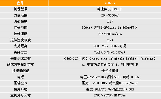YG029A型全自動(dòng)單紗強(qiáng)力機(jī)用于全自動(dòng)測定棉、毛、麻、絲、化纖等單根紗線的斷裂強(qiáng)力、斷裂伸長、斷裂伸長率、斷裂強(qiáng)度、斷裂功、斷裂時(shí)間、CV值。