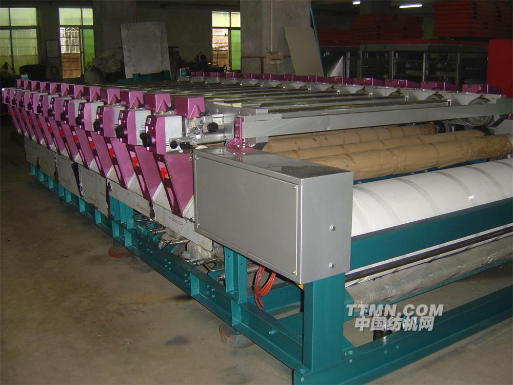 2.水溶性漿和熱塑料樹脂的兩種貼布裝置供選擇,輥筒施加漿和弧行刮刀刮漿確保上漿均勻和機械動作筒練可靠
