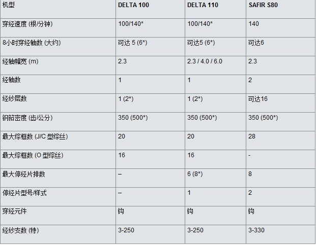 DELTA 110穿經(jīng)機是專門為具中等穿經(jīng)需求的織造廠而設計的。機器以每分鐘穿經(jīng)140根的速度將經(jīng)軸(經(jīng)軸為一層經(jīng)紗層,可選兩層)的經(jīng)紗穿入綜絲,停經(jīng)片和鋼筘。對于粗紗的穿經(jīng),可提供一個選用模塊。