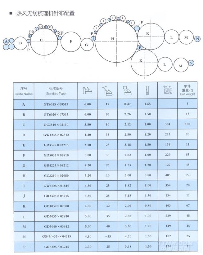 您所在的位置:紡機(jī)網(wǎng) >> 光山白鯊針布有限公司 >> 熱風(fēng)無紡梳理機(jī)針布配置