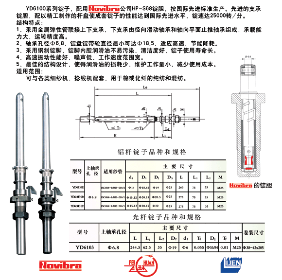 YD6100系列(Novibra錠膽)棉紡高速錠子