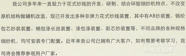 您所在的位置:紡機(jī)網(wǎng) >> 江陰市長(zhǎng)紡科技有限公司 >> 非彈力花式紗裝置
