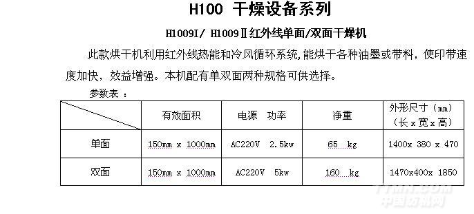 H1009I單面紅外線干燥機(jī)