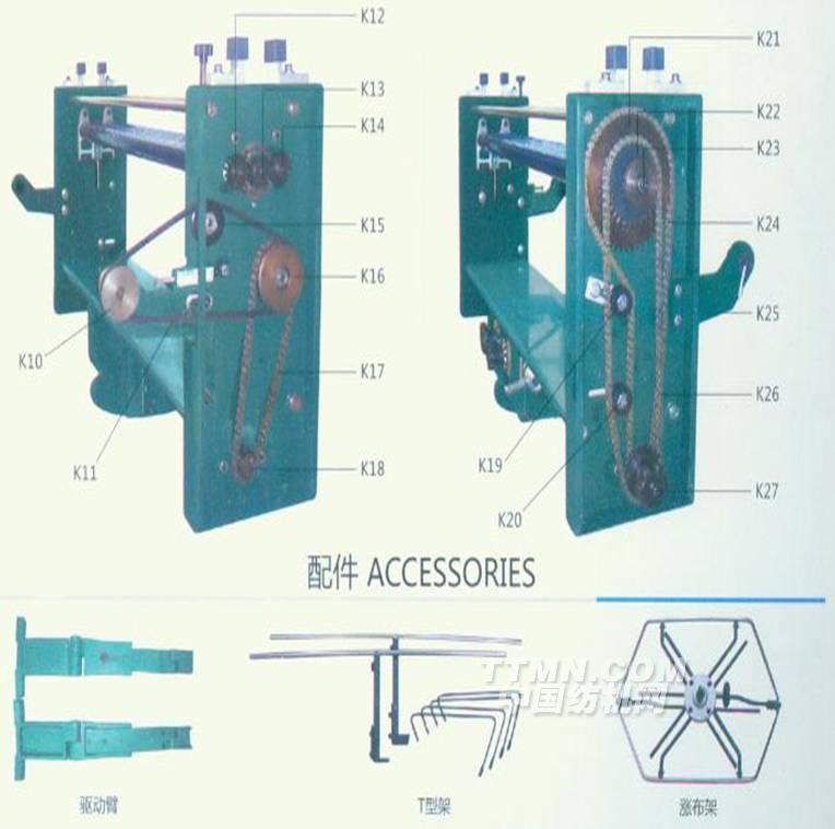 2、穿布并預(yù)算布匹每轉(zhuǎn)下布之長度,按速率表由低速試起,調(diào)制適當(dāng)段數(shù),以防齒輪負(fù)荷過重。