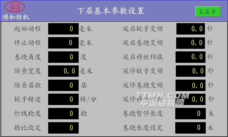 該控制系統(tǒng)采用基于隆昌倍捻機(jī)專用運(yùn)動(dòng)控制LCBNJ-10和WEINVIEW系列觸摸屏的捻線機(jī)自動(dòng)控制系統(tǒng)。通過LCBNJ-10運(yùn)動(dòng)控制完成了捻線機(jī)系統(tǒng)中橫動(dòng)電機(jī),卷繞電機(jī)和錠子電機(jī)的轉(zhuǎn)速控制,并通過WEINVIEW系列觸摸屏可以完成各項(xiàng)數(shù)據(jù)和參數(shù)的設(shè)置,快速完成紗線產(chǎn)品的生成工藝的變換。