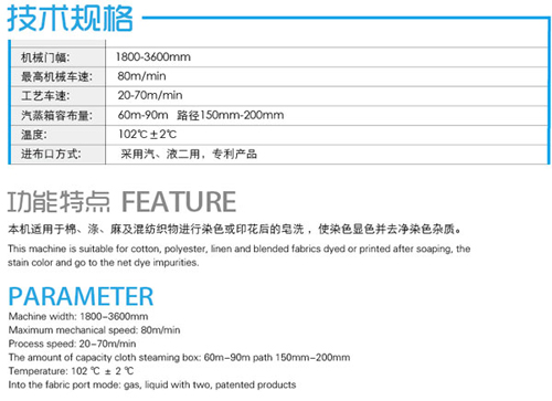 ZXH918型節(jié)能高速絲光機(jī)、ZCYSX091型水洗箱、ZCYSX091型針織松式除油水洗機(jī)、除油水洗機(jī)、ZXH2008熱風(fēng)拉幅定型機(jī)是我公司的新產(chǎn)品。