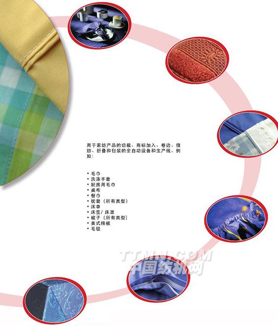 用于家紡產(chǎn)品的切裁、商標加入、卷邊、縫紉、折疊和包裝的全自動設(shè)備和生產(chǎn)線。