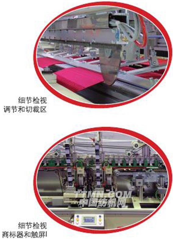 生產(chǎn)上的優(yōu)勢(shì):高產(chǎn)量、高靈活性、鏈縫,帶有自動(dòng)換梭裝置的鎖縫、多條進(jìn)布操作的可能性、遠(yuǎn)程診斷維修、觸屏操作簡(jiǎn)單易行、通過(guò)觸屏可調(diào)節(jié)卷邊寬度、單獨(dú)的觸屏用于電子控制商標(biāo)器