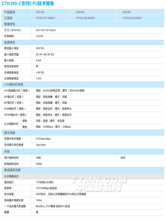 C35-00  CTH3-C系列運(yùn)動控制型CPU,2MB程序數(shù)據(jù)空間,32KB掉電保持?jǐn)?shù)據(jù),55M擴(kuò)展總線;