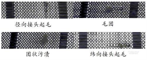 檢測(cè)方格布布面的各種疵點(diǎn),如斷經(jīng),斷緯,緯斜,毛團(tuán),污漬等;